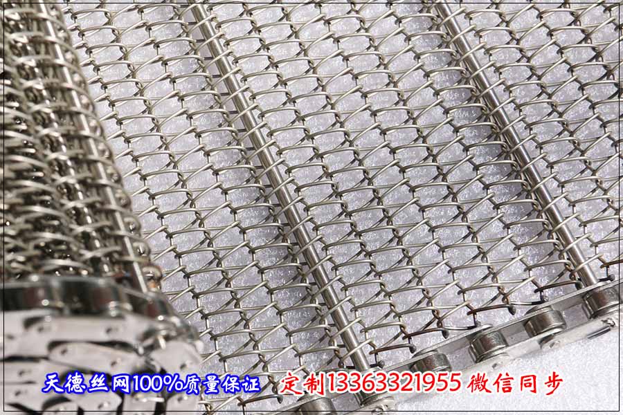 其中這臺鋼絲編織網(wǎng)帶輸送機的相關規(guī)格是這樣的:應客戶的需要網(wǎng)帶輸送機的總寬度為500毫米,總高度為500毫米,也就是半米高的高度,長度為7米,輸送為平面輸送。由于輸送的是魚丸,我們采用鋼絲編織型的不銹鋼輸送帶比較合適,此形式的網(wǎng)帶成本較低,使用時間長。魚丸速凍輸送網(wǎng)帶的總寬為400毫米,輸送帶的寬度一定要小于輸送機的總寬度,輸送帶的總長度為14米,因為輸送機的長度為7米,不銹鋼輸送帶需要轉(zhuǎn)一圈的,輸送網(wǎng)帶的絲徑為1.2毫米,編織成型的輸送帶的孔為15*20毫米,只要魚丸不會漏下去就可以,根據(jù)輸送的需要網(wǎng)帶的兩側(cè)安裝高5公分的擋板,擋板的厚度為1.2毫米,作用是為了防止魚丸在輸送的過程中會漏下去。