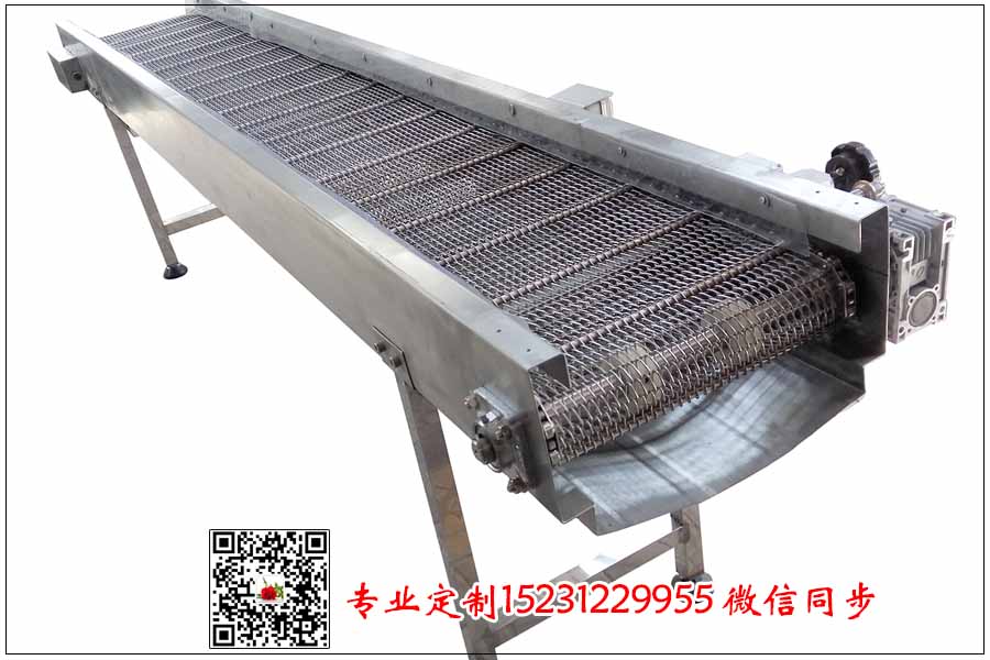 網帶輸送機是輸送行業(yè)必不可少的輸送設備,昨天桂林的袁總來電咨詢不銹鋼網帶輸送機,用來輸送小食品,我公司根據(jù)袁總提供的相關資料定制具體數(shù)據(jù)如下:規(guī)定在食品行業(yè)我們采用不銹鋼304材質,機器的總寬在700毫米,總長度在5米,要求輸送機不帶腿,鏈條不銹鋼網帶 鏈節(jié)距為31.75毫米,不銹鋼桿直徑為8毫米,鏈桿之間的距離為200毫米,不銹鋼絲直徑為1.5毫米,網帶節(jié)距為30毫米,網帶螺距為20毫米, 配帶0.75千瓦電機,帶減速機和變頻器,要求速度比為1:50??刂崎_關要求正反均可調節(jié)。 網帶輸送機的用途特別廣泛,不銹鋼網帶是輸送機中重要的配件,可以根據(jù)輸送產品的形狀大小加工成不同規(guī)格結構的網帶。 不銹鋼輸送機整機堅固耐用,不愛生銹,使用壽命長,已經廣泛的應用在解凍流水線輸送設備中。