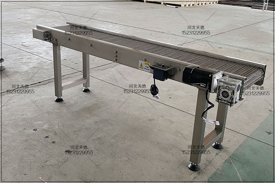 3、 檢查物料在輸送帶上的位置。 物料在不銹鋼網(wǎng)帶橫斷面上不居中,將導(dǎo)致金屬輸送帶跑偏。如果物料偏到右側(cè),則輸送機輸送帶向左側(cè)跑偏,相反的也是這樣的。在使用時應(yīng)盡可能的讓物料居中。為減少此類輸送機輸送帶跑偏可增加擋料板,改變物料的方向和位置。