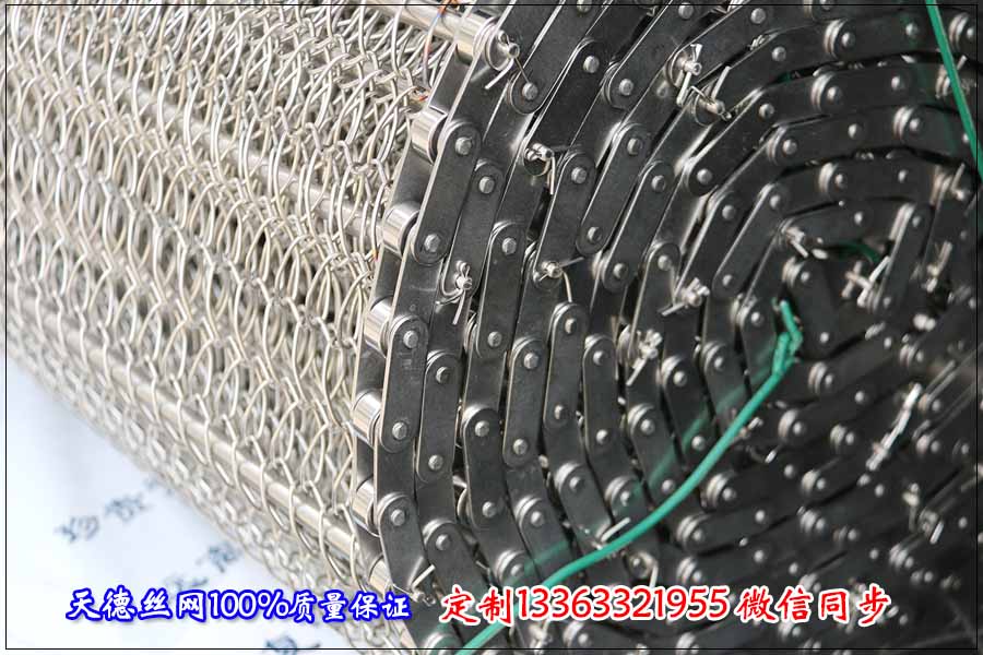 鏈條網(wǎng)帶簡介:鏈條式網(wǎng)帶是由鏈條驅(qū)動的輸送網(wǎng)帶,一般都由鏈條帶動小軸再帶動網(wǎng)帶運行。 網(wǎng)帶都采用軋牙串條、左右網(wǎng)條二根串,并大小網(wǎng)條連接而成,大網(wǎng)條內(nèi)穿進(jìn)小軸,小軸二端穿入鏈條孔,從而達(dá)到鏈條驅(qū)動輸送網(wǎng)帶。鏈條網(wǎng)傳動平穩(wěn)、傳動力矩小。