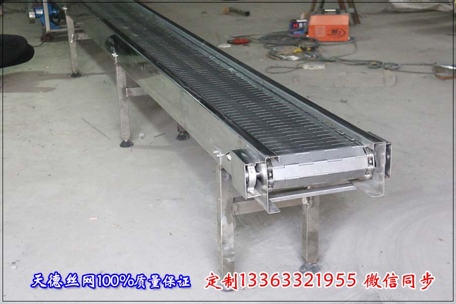 名稱:鏈板輸送機(jī) 材質(zhì):碳鋼 規(guī)格:長(zhǎng)2.5米,使用寬度200mm 機(jī)身板厚2mm 鏈板:節(jié)距38.1mm 板厚1.5mm 串桿6mm 刮板高20mm 間隔300mm一個(gè) 。