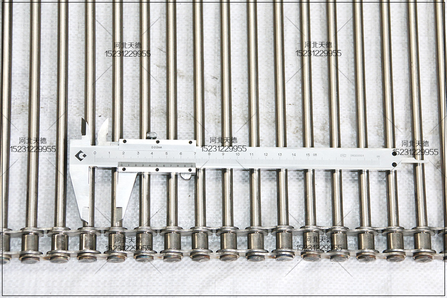 蛋糕卷加工設(shè)備金屬網(wǎng)帶可以采用鏈桿輸送帶,總寬度580mm,材質(zhì)不銹鋼304網(wǎng)帶,鏈條采用節(jié)距25.4mm,串桿使用6mm的,每?jī)?/span>節(jié)鏈條里面都安裝一根串桿,透氣性能非常好的鏈條金屬網(wǎng)帶,串桿中間的孔隙為15mm,不會(huì)出現(xiàn)掉落產(chǎn)品的情況,鏈桿輸送帶兩側(cè)采用氬弧焊固定的,因此比較費(fèi)事,這樣做的在以后需要更換中間串桿的時(shí)候有些不方便,成本也會(huì)比使用穿銷的輸送帶高。