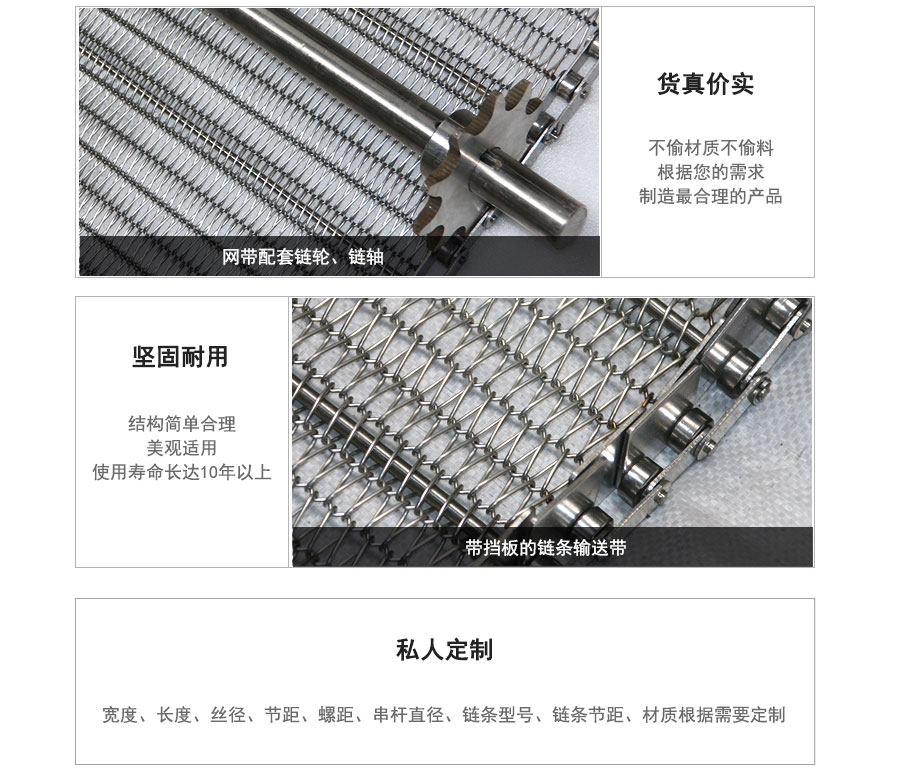 廣泛用于玻璃制品行業(yè)的退火爐網(wǎng)帶、烤花爐網(wǎng)帶等。食品加工行業(yè)、脫水蔬菜、速凍食品單凍機前處理網(wǎng)帶、鏈網(wǎng)。粉末冶金、金屬熱處理、淬火、燒結、釬焊、焙燒、光亮、發(fā)黑、軸承、滲碳高溫爐網(wǎng)帶、擋板式網(wǎng)帶、涂裝烘干線輸送網(wǎng)帶、泡沫鎳還原生產(chǎn)線網(wǎng)帶,清洗機、提升機、干燥機、烘干機、固化爐網(wǎng)帶。