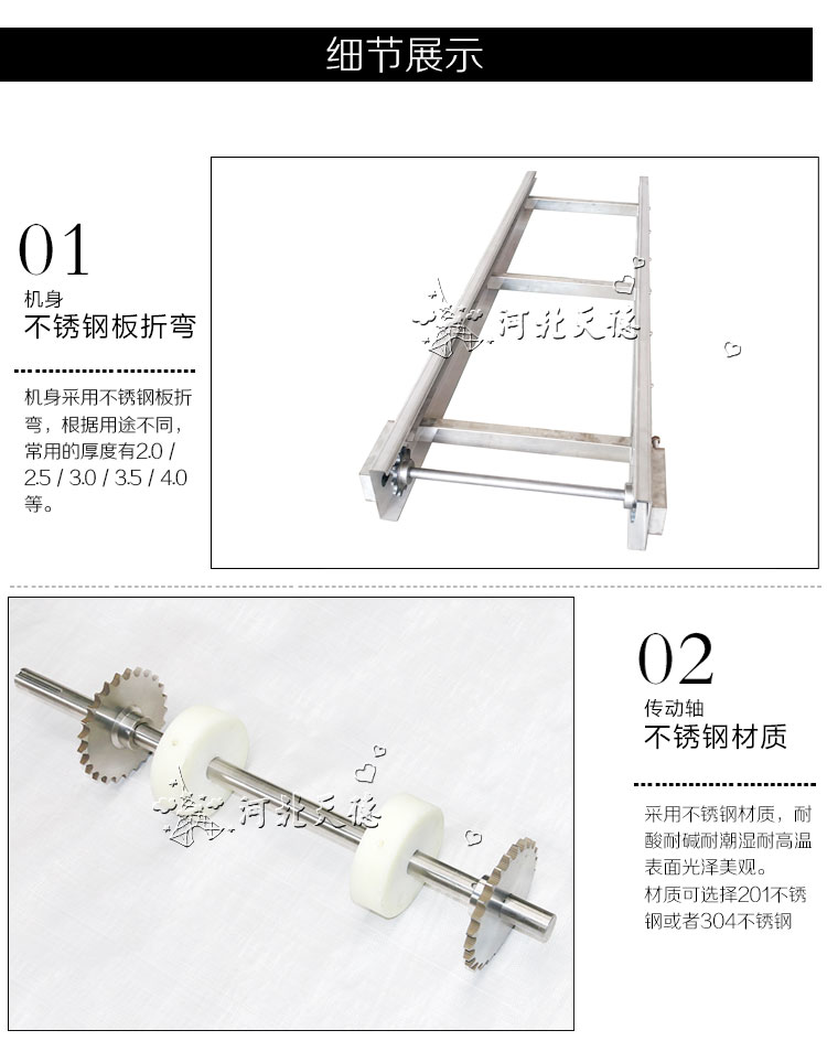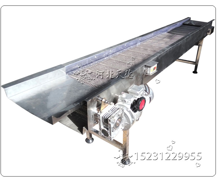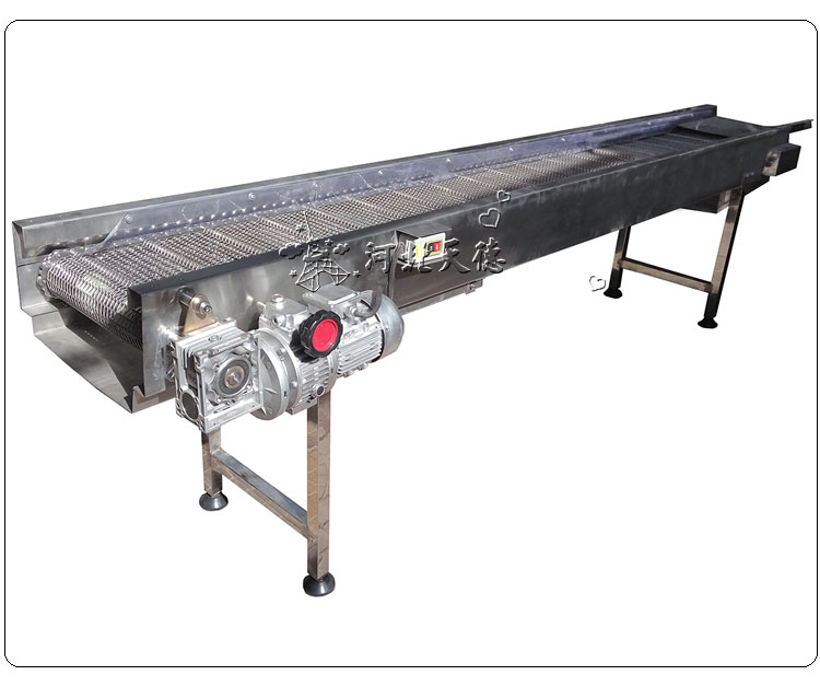 組成結(jié)構(gòu):由鏈輪、鏈條、網(wǎng)帶、驅(qū)動設(shè)備組成,可根據(jù)輸送物料的種類、體積、重量來選用不同形式的網(wǎng)帶。