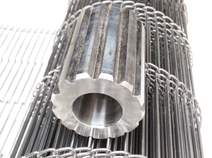 因為外觀看起來像長城一樣,一般人們叫它長城網(wǎng)帶別稱馬蹄鏈。長城網(wǎng)帶的邊緣處理可以使折邊也可以是焊邊,長城網(wǎng)帶由金屬片和圓棍所組成,網(wǎng)帶自重輕,網(wǎng)孔空隙大,網(wǎng)面平整,運行平穩(wěn),不會走偏??勺飨礈臁⒏稍?、冷卻、熱處理的輸送線。